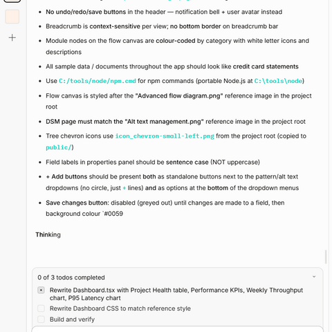 I used OpenCode with GitHubCopilot's Claude AI models and instructed the AI to base decisions on our user interview data along with our design system guidelines to create mid-fidelity wireframes that we iterated on; user stories for feature creation and usability test plans.